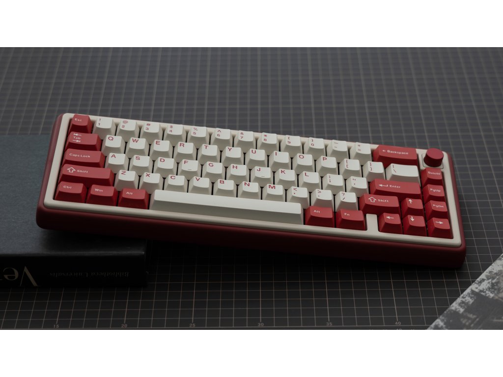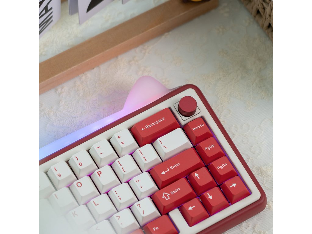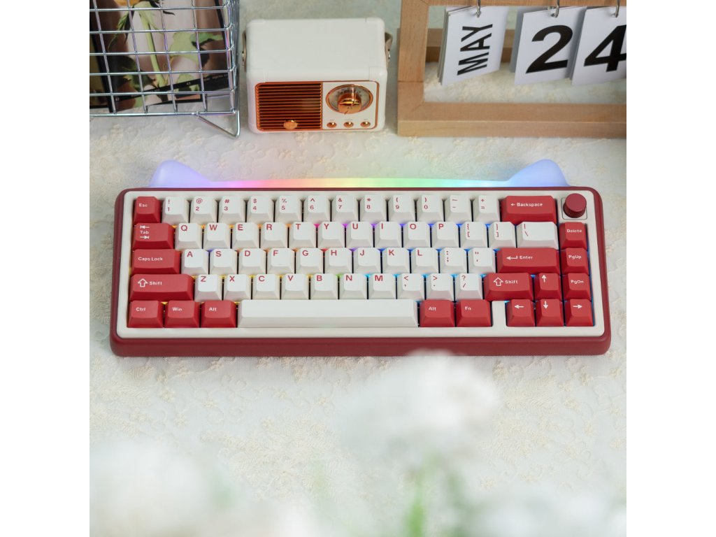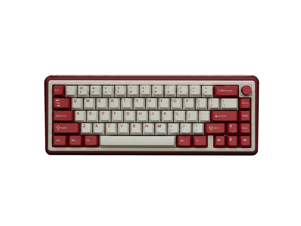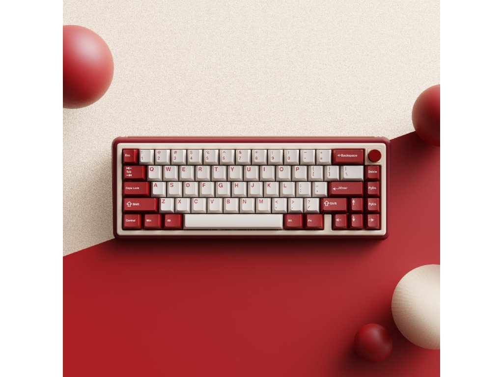 Chilkey Foxy65 – mechanické spínače Pink Lotus (lineární) nebo Sprout Green (taktilní), drátová/bezdrátová (Tri-mode), RGB podsvícení, kompaktní (65%) layout, americká lokalizace kláves, hliníková konstrukce, USB-C konektor. Barva Beige Red.