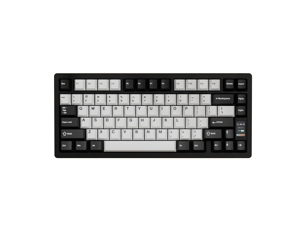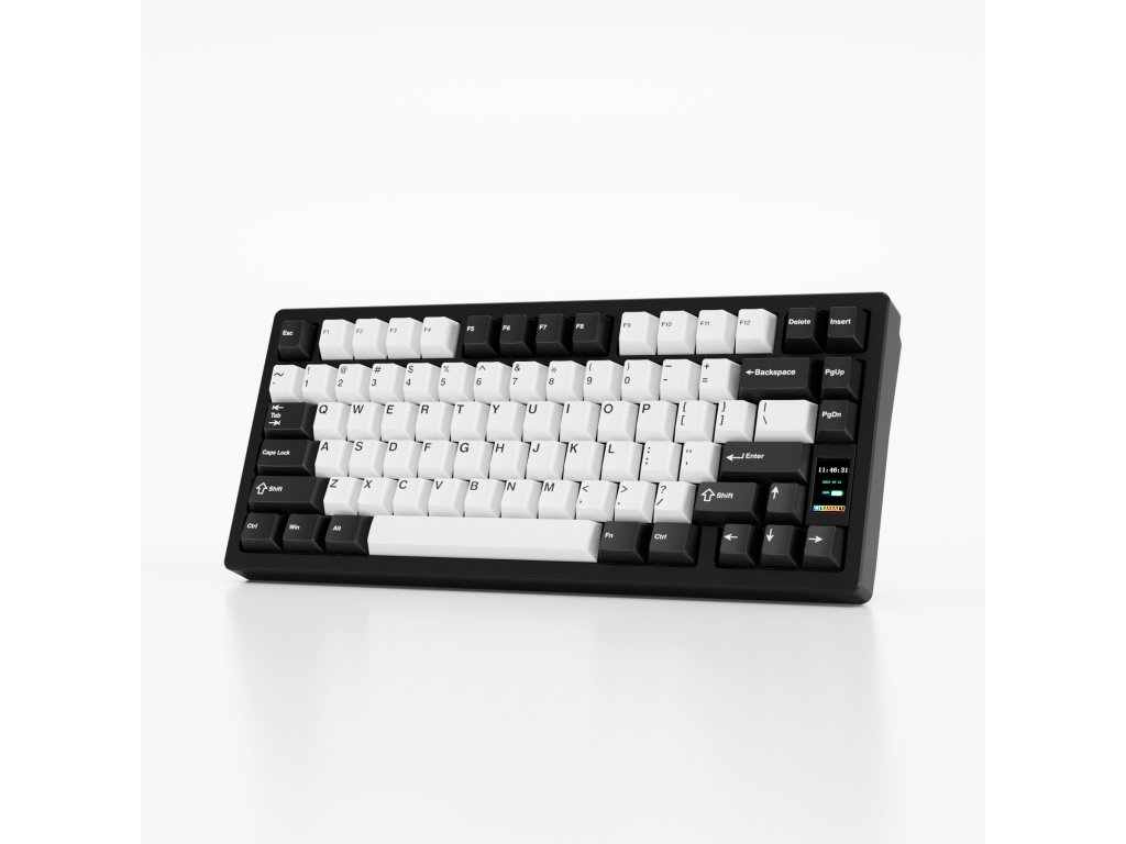 Chilkey ND75 – mechanické spínače Chilkey Blue Lotus, drátová/bezdrátová, RGB podsvícení, kompaktní (75%) layout s LCD displejem, americká lokalizace kláves, hliníková konstrukce, USB-C konektor, barva Jet Black.