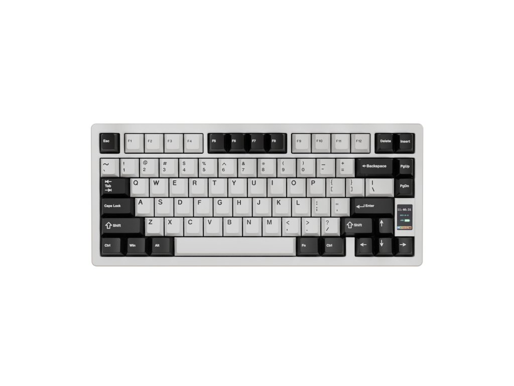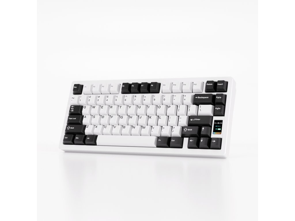 Chilkey ND75 – mechanické spínače Chilkey Blue Lotus, drátová/bezdrátová, RGB podsvícení, kompaktní (75%) layout s LCD displejem, americká lokalizace kláves, hliníková konstrukce, USB-C konektor, barva Pure White.
